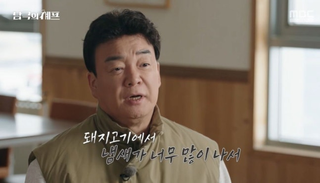 이날 네 명의 대원은 세종기지 요리 담당 안치영 대원과 인사를 나눈 후 함께 첫 번째 식사에 나섰다. 메뉴는 미역국과 제육볶음이었다. 먼저 미역국을 맛본 백종원은 이어 제육볶음을 먹은 후 표정이 굳었다.