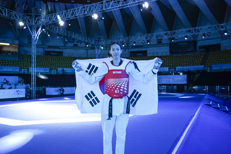 2025 방콕 월드태권도 그랑프리 챌린지에서 우승한 김유진. 사진=세계태권도연맹 한국 태권도가 ‘2025 방콕 월드태권도 그랑프리 챌린지’ 마지막 날 다시 한번 저력을 과시했다.