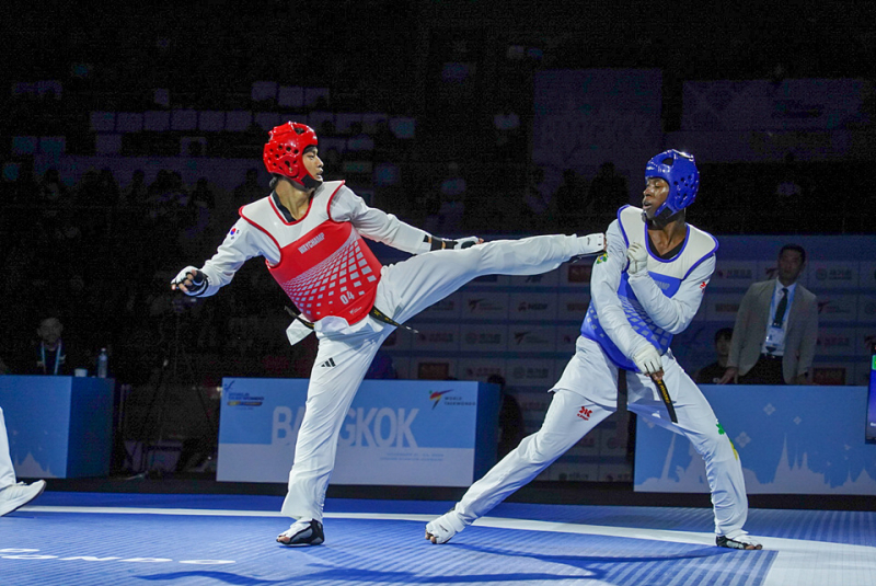 2025 방콕 월드태권도 그랑프리 챌린지 남자 -80kg 결승전에서 서건우(왼쪽)의 모습. 사진=세계태권도연맹 서건우(올림픽랭킹 4위)는 남자 –80㎏급에서 대회 최고 수준 강호들을 잇달아 넘어서며 결승에 올랐다. 결승에서 최근 우시 세계선수권 우승자인 올림픽랭킹 1위 헨리케 마르케스 로드리게스 페르난데스(브라질)를 다시 만나 접전을 펼쳤으나 0-2(2-2 우세패, 3-17)로 패해 은메달을 획득했다.