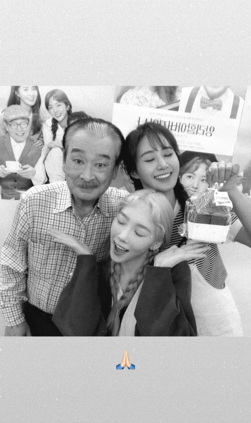 25일 태연은 자신의 SNS에 유리, 이순재와 함께 찍은 사진에 손을 모아 기도하는 이모티콘을 게재하며 애도를 표했다.