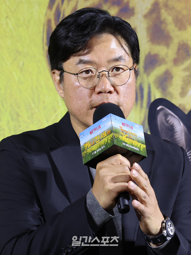 나영석 PD가 25일 오전 서울 용산구 CGV용산아이파크몰에서 열린 넷플릭스 예능 '케냐 간 세끼' 제작발표회에 참석해 인사말을 하고 있다. '케냐 간 세끼'는 믿고 보는 웃음 메이커 3인방 이수근, 은지원, 규현의 우당탕탕 아프리카 여행기. 서병수 기자 qudtn@edaily.co.kr /2025.11.25/ 나 PD는 “한국인이 근 20년 동안 봐온 예능의 변주다. 그 익숙함을 국내 시청자들이 반겨주시면 좋겠다고 생각했고, 글로벌 시청자들에겐 ‘한국은 이런 걸 즐겨. 어떻게 생각해?’라고 묻고 싶었다”고 밝혔다. 최근 2시간에 육박하는 방송과 달리 분량 부담이 적은 것도 협업의 장점이었다고 덧붙였다.