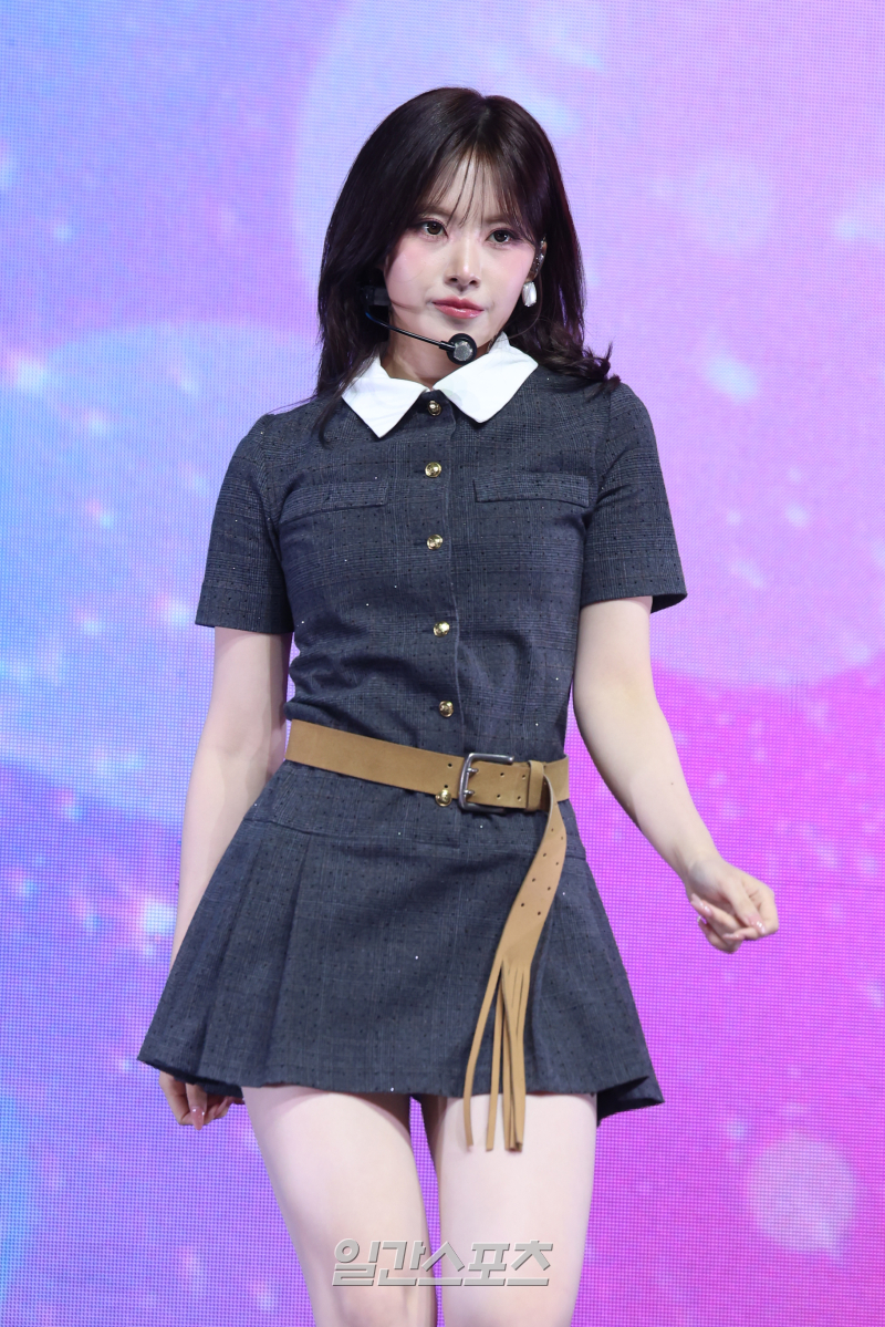 리센느(RESCENE) 리브가 25일 오후 서울 영등포구 명화라이브홀에서 열린 미니 3집 '립밤(lip bomb)' 발매 기념 쇼케이스에 참석해 타이틀곡 '블룸(Bloom)' 무대를 선보이고 있다.