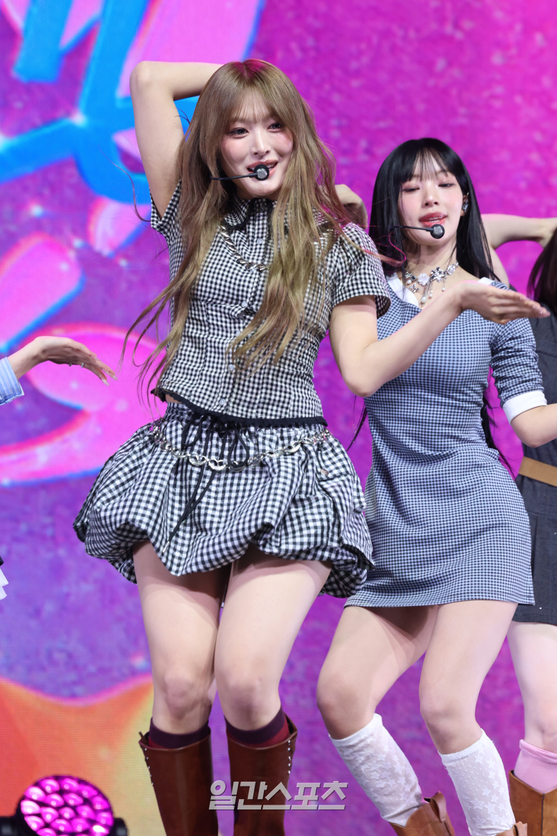 리센느(RESCENE) 미나미가 25일 오후 서울 영등포구 명화라이브홀에서 열린 미니 3집 '립밤(lip bomb)' 발매 기념 쇼케이스에 참석해 타이틀곡 '블룸(Bloom)' 무대를 선보이고 있다.