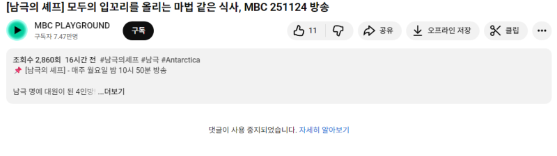 지난 18일 게시된 이 영상은 공개 7일 동안 37만 회 가량 조회되며 뜨거운 관심을 방증했다. 눈여겨볼 점은 댓글 창이 열려있다는 것이다. 앞서 백종원이 출연하는 MBC 교양 리얼리티 ‘남극의 셰프’ 측은 백종원의 더본코리아 관련 논란을 의식한 듯 유튜브 댓글 창을 닫은 바 있다.