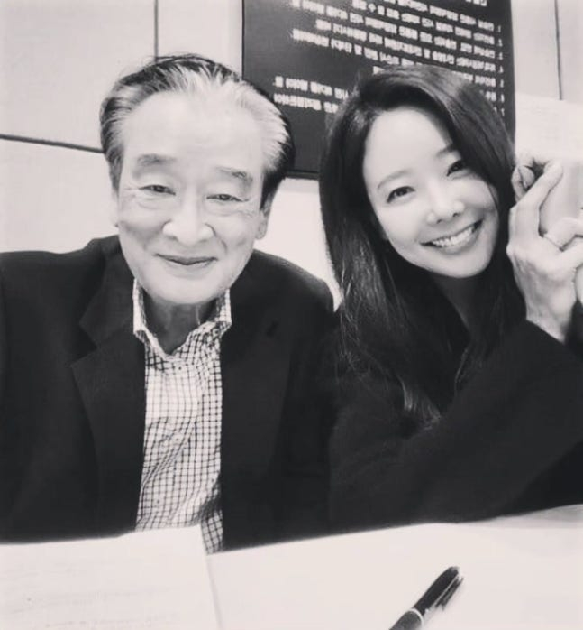 공개한 사진은 이순재와 소유진이 함께 한 여러 순간들인데, 2021년 연극 ‘리어왕’과 2023년 ‘갈매기’에서 함께 호흡한 모습도 담겨 눈길을 끈다. 사진=소유진 SNS. 최근작에서 남다른 인연을 보인 두 사람은 지난해 채널A ‘절친 토큐멘터리-4인용 식탁’에도 함께 출연했다. 당시 이순재는 자신의 절친으로 소유진을 직접 초대하며 인연을 과시했다.