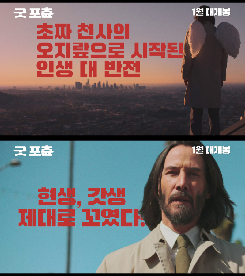 개봉 확정 소식과 함께 공개된 티저 예고편은 영화에 대한 기대감을 최고치로 끌어올린다. 특히 그나마 갖고 있던 작은 날개마저 빼앗긴 채 사람들과 똑같이 노동하고 허겁지겁 음식을 먹거나 하나님과 면담을 요청하는 제프에게 자신은 말단이라며 회피하는 가브리엘의 고단한 모습은 ‘굿 포츈’이 선사할 특급 코미디에 대한 기대감을 더한다.