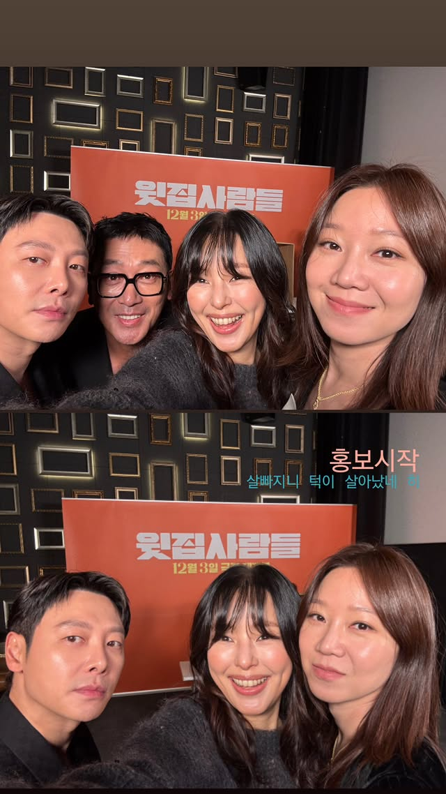 해당 사진에는 영화 ‘윗집 사람들’의 주역인 공효진, 하정우, 김동욱, 이하늬의 장난기 가득한 모습이 담겼다. 네 사람은 전날 서울 메가박스 코엑스 열린 제작보고회를 시작으로 본격적인 신작 홍보 일정에 돌입했다.