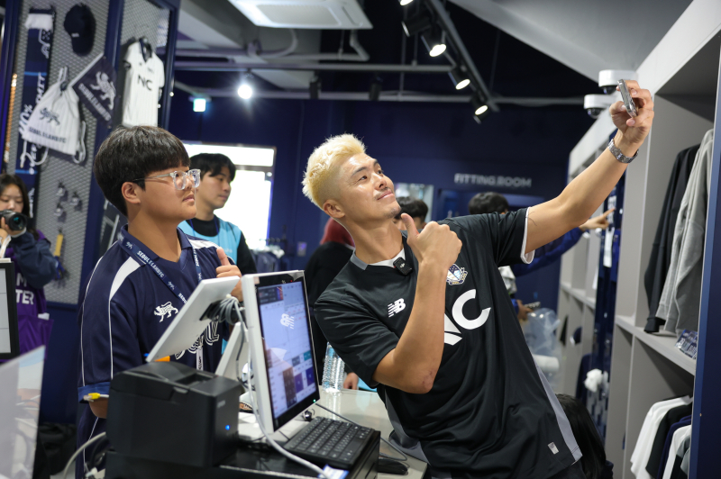 창단 멤버 김영광의 공식 스토어 일일 점원 활동 모습. 사진=서울 이랜드 ‘보법이 남다른’ 서울 이랜드만의 특별한 팬 이벤트