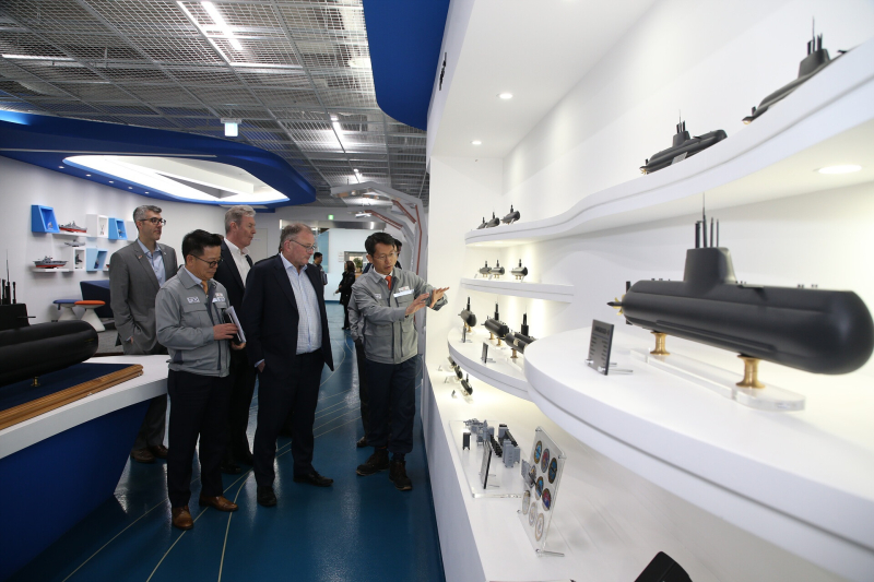 지난해 데이비드 락우드 밥콕 인터내셔널 그룹 총괄 회장이 한화오션 거제사업장을 둘러보고 있다. 한화오션 제공 폴란드 정부가 신형 잠수함 사업자로 스웨덴 방산업체 사브를 선정했다. 한화오션은 탈락했다.