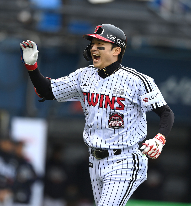 박해민은 "KT와 서너 차례 만났고, 통화도 자주했다. 거절하기 힘든 금액까지 제안해 왔다. 내가 그 정도 선수는 아니라고 생각한다"라며 "내가 생각하는 값어치보다 훨씬 높게 평가해 주셨다. 그래서 (KT에) 더 죄송하고 감사하다"며 고개를 숙였다. 박해민이 2025 한국시리즈 1차전에서 홈런을 터뜨린 뒤 홈에 들어오고 있다. 사진=구단 제공 4년 전 총액 60억원의 계약으로 삼성 라이온즈에서 LG로 이적했던 그는 또 한 번 대박을 터뜨렸다. 전성기 FA보다 두 번째 FA 계약에서 더 좋은 대우를 받았다. 박해민은 "세 번째 FA가 될 때까지 오래 뛰고 싶다"라며 "(이번 계약도) 현재보다 미래를 내다본 결정"이라고 말했다.