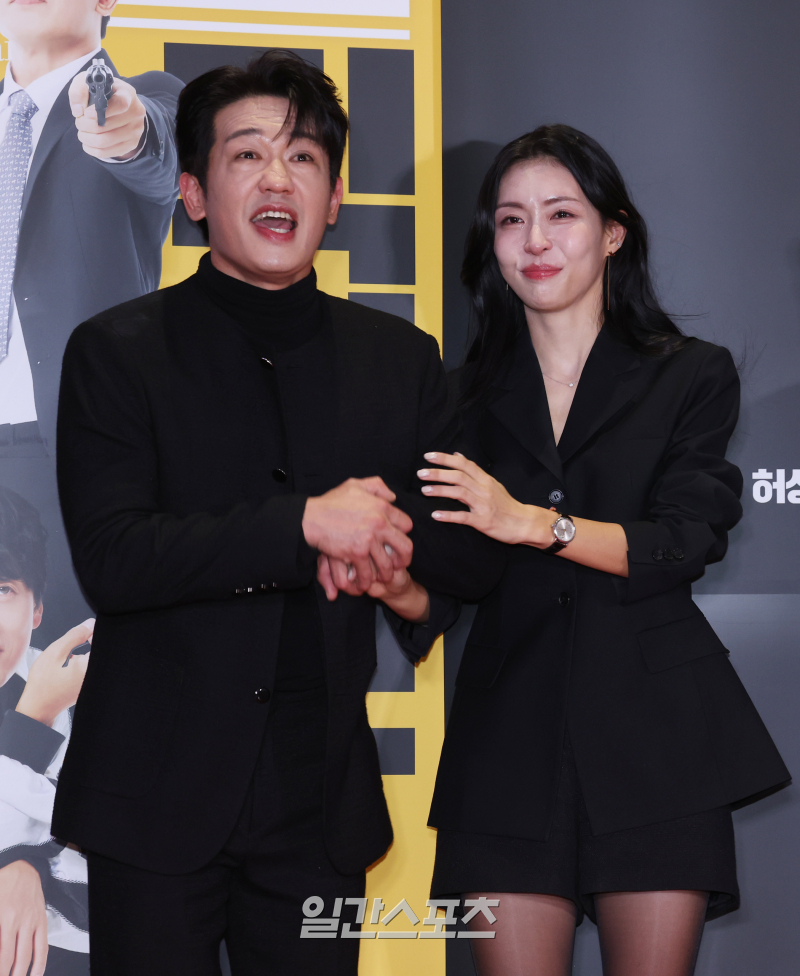 배우 허성태, 서민주가 28일 오후 서울 강남구 메가박스 코엑스점에서 열린 영화 '정보원' VIP시사회 포토월 행사에 참석해 포토타임을 갖고 있다.
