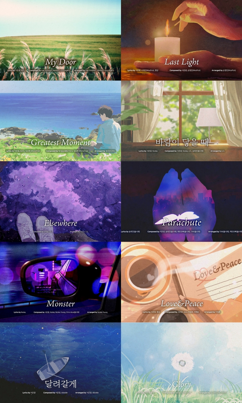 타이틀곡 ‘그레이티스트 모먼트’를 비롯해 ‘마이 도어’, ‘바람이 닿을 때’, ‘엘스웨어’, ‘패러슈트’, ‘몬스터’, ‘러브 앤 피스’, ‘달려갈게’, ‘글로리’, 지난달 선공개된 ‘라스트 라이트’까지, 서은광의 짙은 음악색과 더욱 깊어진 보이스가 돋보이는 신곡들이 팬심을 제대로 저격했다.