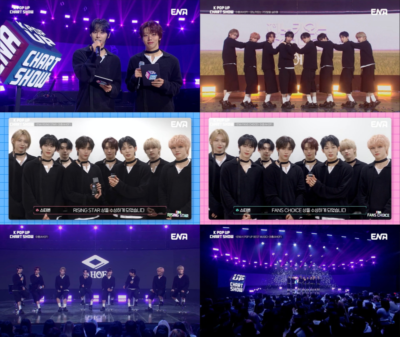이날 아홉은 ENA 라이징 스타상에 이어 ENA 팬스 초이스, ENA 케이팝업 베스트 뮤직상까지 연달아 트로피를 거머쥐며 ‘케이팝업 차트쇼’에서만 세 부문을 휩쓸었다. 지난 7월 첫 출연 당시 2관왕을 기록했던 아홉은 이번 컴백에서는 팬스 초이스까지 추가하며 더욱 확고해진 팬덤 저력과 음악적 존재감을 입증했다.