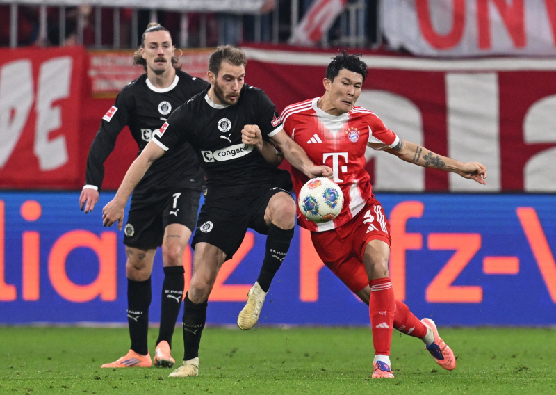 장크트 파울리전 김민재의 수비 모습. 사진=로이터 연합뉴스 국가대표 수비수 김민재가 소속팀 바이에른 뮌헨의 값진 역전승에 이바지했다.
