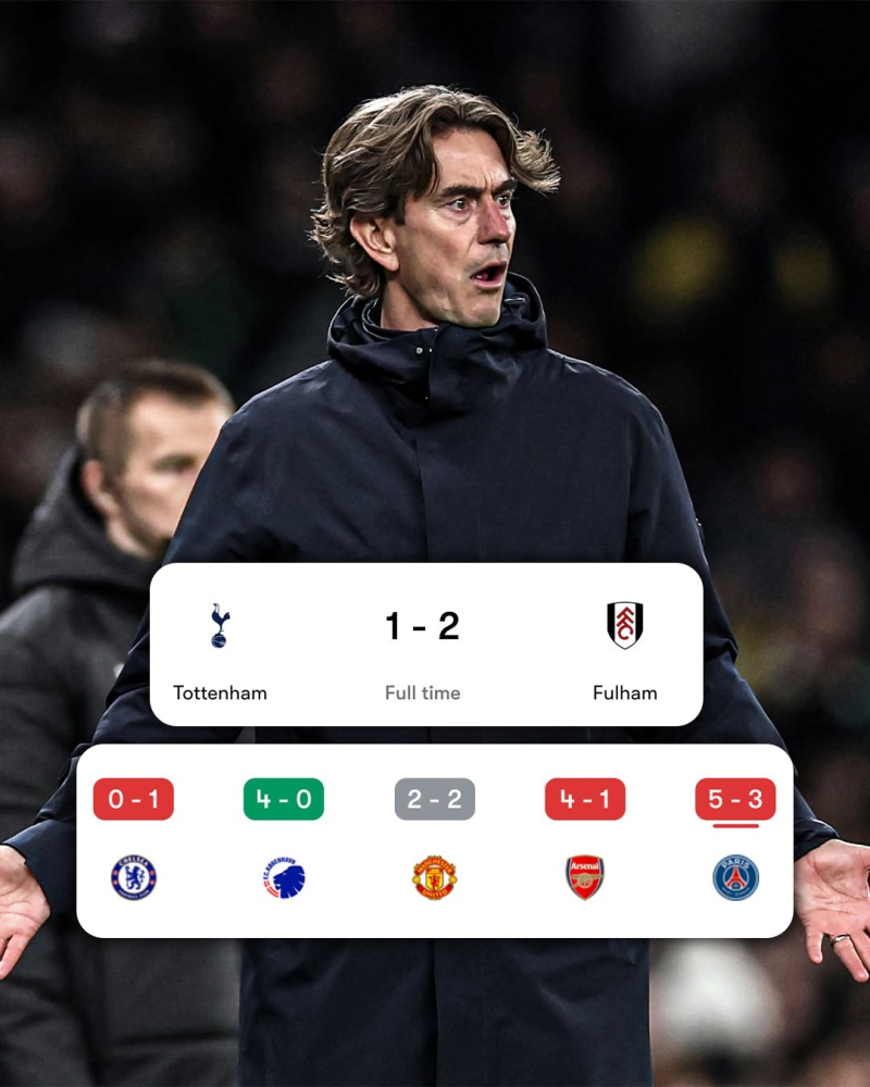 토트넘은 30일(한국시간) 영국 런던의 토트넘 홋스퍼 스타디움에서 열린 풀럼과의 2025~26 EPL 13라운드서 1-2로 졌다. 토트넘은 리그 5패(5승3무)째를 기록하며 10위(승점 18)가 됐다. 최근 공식전 3연패의 부진이다. 동시에 이달 런던을 연고지로 한 첼시, 아스널, 풀럼과의 맞대결서 내리 지며 자존심을 구겼다.