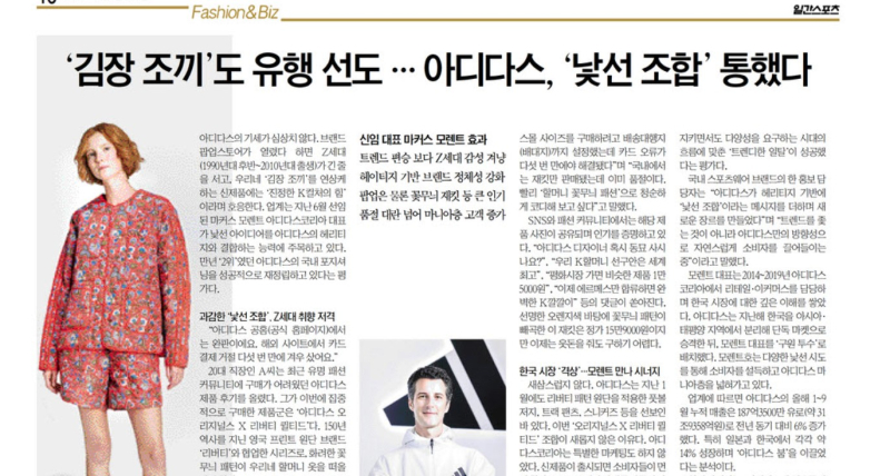 패션업계는 지난 6월 선임된 모렌트 아디다스코리아 대표가 선임 후 전개 중인 ‘낯선 조합이 더 재밌잖아’ 캠페인이 젊은 소비자들의 감성을 정확히 겨냥했다고 본다. 스포츠웨어라는 핵심 가치를 지키면서도 다양성을 요구하는 시대의 흐름에 맞춘 ‘트렌디한 일탈’이 성공했다는 평가다.