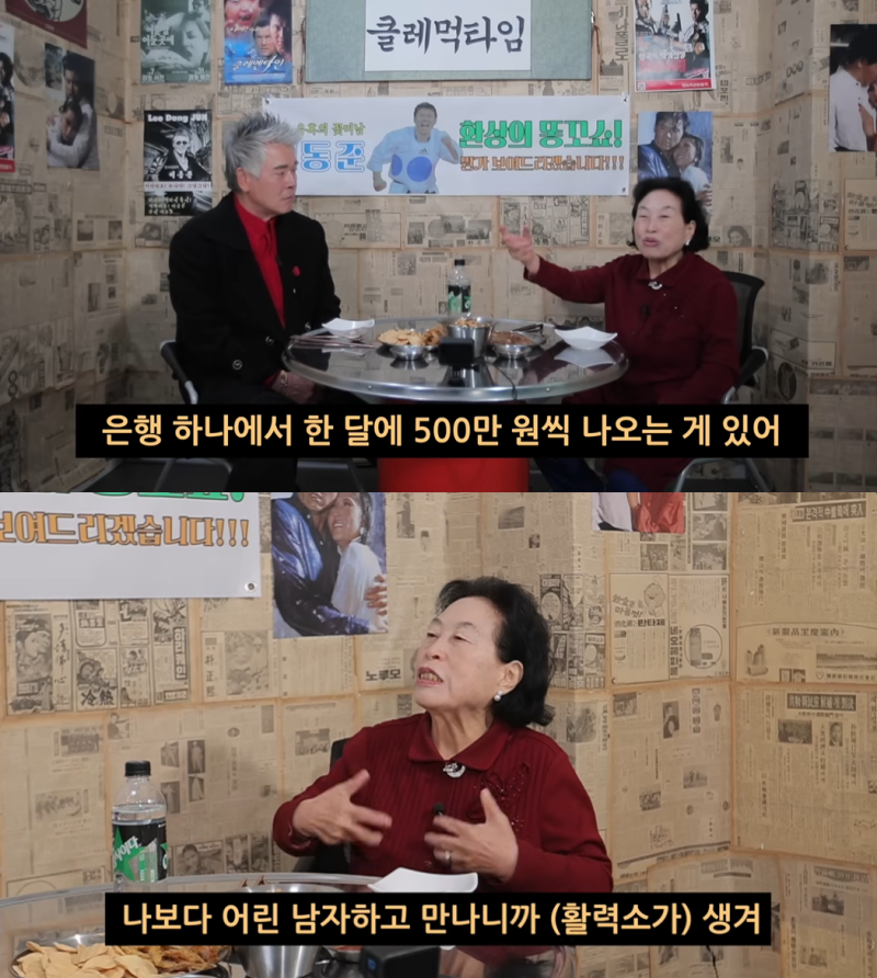 전원주는 또 “남자친구랑 노래방도 가고 나이트클럽도 간다. 흰머리는 조금 염색한다. 그래도 얼굴은 아직 그렇게 쭈글쭈글하진 않다”며 “젊은 남자하고 다니니 활력소가 생겨서 내 얼굴도 젊어지는 것 같다”고 얘기했다.