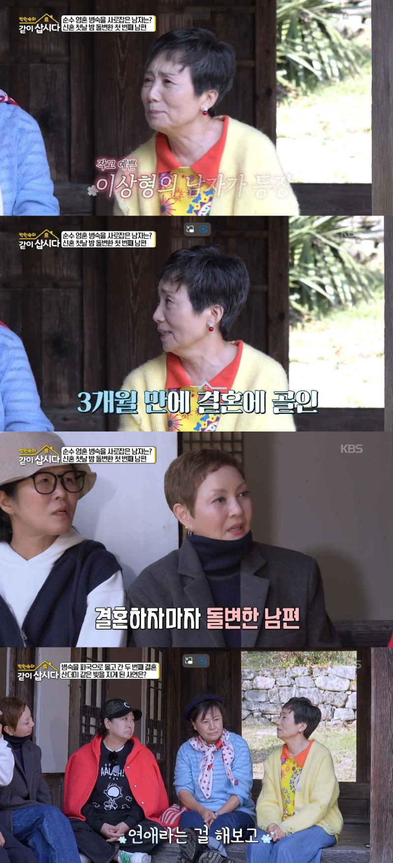 1일 방송된 KBS2 ‘박원숙의 같이 삽시다’에는 성우 겸 배우 성병숙이 출연해 두 차례의 결혼과 그 뒤에 남은 깊은 상처를 솔직하게 고백했다.