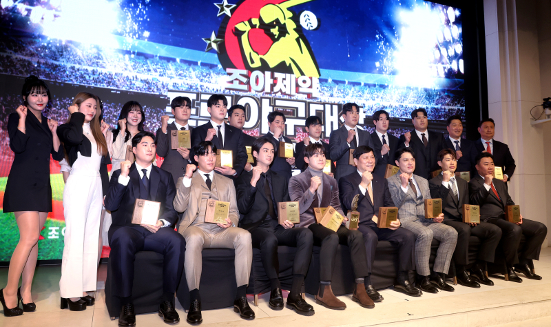 일간스포츠-조아제약 프로야구 대상은 국내 최고의 권위를 자랑하는 시상식이다. 1977년 '실업야구 연간 3상'으로 출범해 '한국통신 001 연간3상' '제일화재 프로야구대상'을 거쳐 조아제약 프로야구 대상까지 48년의 역사를 이어왔다. 3일 오전 서울 강남구 엘리아나호텔에서 열린 '2024 조아제약 프로야구 대상 시상식'에서 수상자들이 시상식을 마치고 단체로 기념촬영을 하고 있다. 김민규 기자 mgkim1@edaily.co.kr /2024.12.03/ 올해 시상식은 한 단계 업그레이드되어 더 주목받는다. 전통적인 시상식에서 벗어나 선수와 팬이 함께 만드는 코너를 많이 마련했다. 다채롭고 파격적인 이벤트가 이어진다.