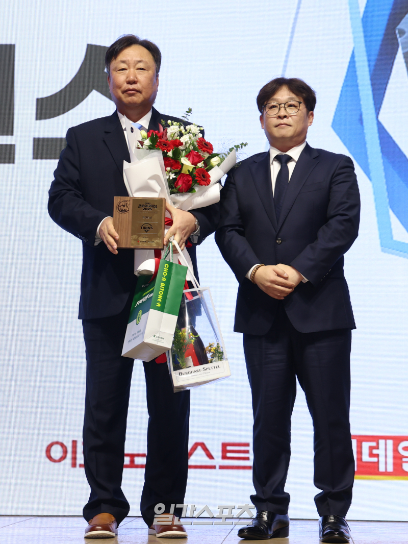 차명석 LG단장이 프런트상을 수상하고 기념촬여을 하고 있다.