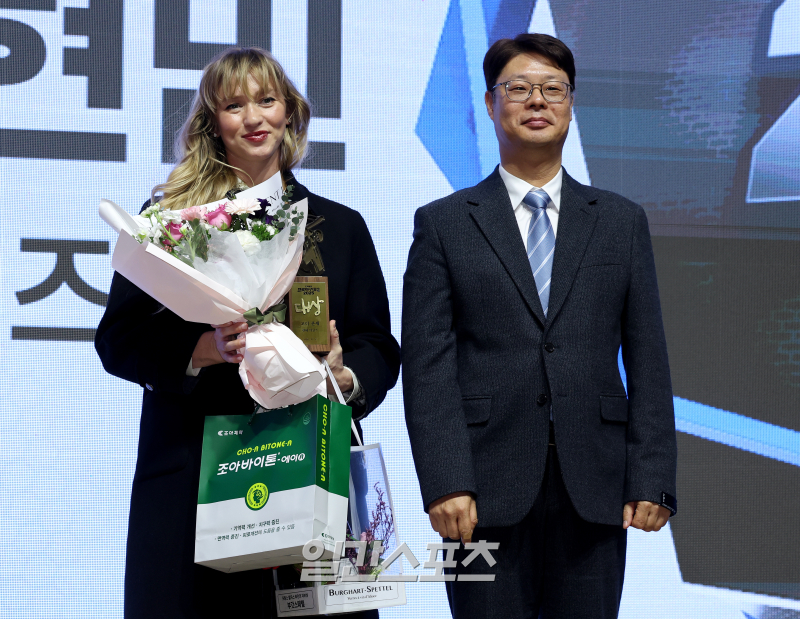 (주)조아제약과 일간스포츠가 공동제정한 '2025 조아제약 프로야구 대상' 시상식이 2일 오전 서울 강남구 라움아트센터에서 열렸다. 한화 폰세의 부인 엠마 폰세가 대상을 수상하고 조성배 조아제약 대표이사와 함께 포즈를 취하고 있다. 국내 최고의 권위를 자랑하는 일간스포츠-조아제약 프로야구 대상은 1977년 출범 이후 48년의 역사를 이어온 명실상부 국내 최고의 프로야구 시상식이다. 올해 시상식은 전통 시상식의 틀을 뛰어넘어, 팬들이 참여하는 토크쇼, 특별사인회 등 다채로운 행사로 거듭났다. 특별취재단/2025.12.02/(주)조아제약과 일간스포츠가 공동제정한 '2025 조아제약 프로야구 대상' 시상식이 2일 오전 서울 강남구 라움아트센터에서 열렸다. KT 안현민이 대상을 수상하고 소감을 밝히고 있다. 국내 최고의 권위를 자랑하는 일간스포츠-조아제약 프로야구 대상은 1977년 출범 이후 48년의 역사를 이어온 명실상부 국내 최고의 프로야구 시상식이다. 올해 시상식은 전통 시상식의 틀을 뛰어넘어, 팬들이 참여하는 토크쇼, 특별사인회 등 다채로운 행사로 거듭났다. 특별취재단/2025.12.02/ 코디 폰세(한화 이글스)와 안현민(KT 위즈)이 '2025 조아제약 프로야구 대상' 을 공동 수상했다.