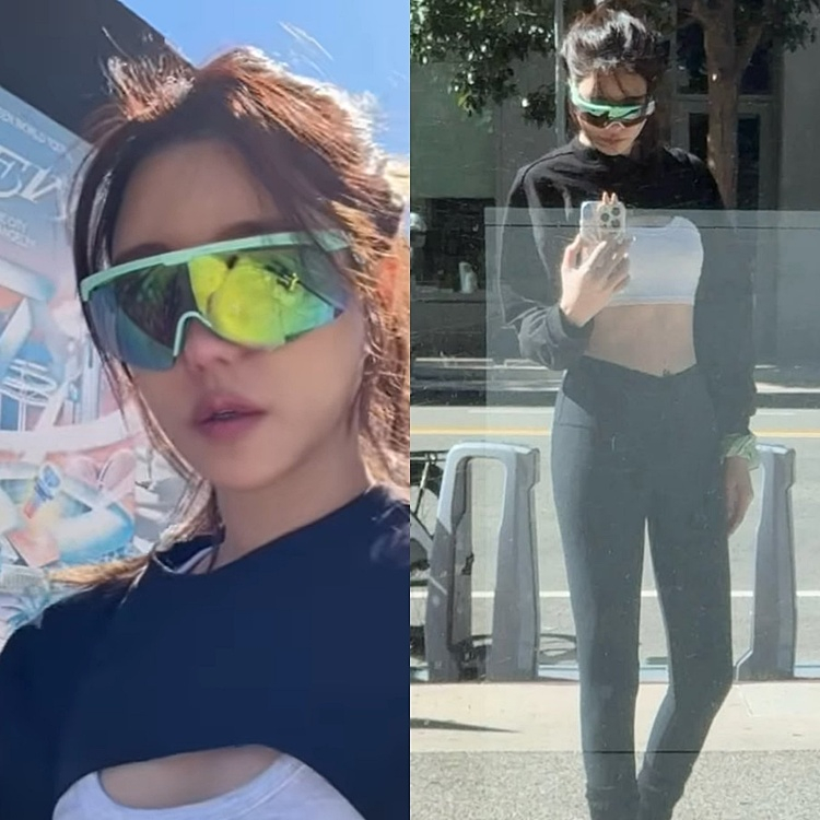 특히 잘 정리된 11자 복근과 탄탄한 보디라인이 시선을 단숨에 사로잡는다. 블랙 톱과 화이트 이너의 대비가 허리 라인을 더욱 도드라지게 만들었고, 스포티한 고글 선글라스는 도시적인 분위기를 더했다. 자연스럽게 묶은 머리와 미니멀한 스타일링이 이지아 특유의 세련된 무드를 한층 강조한다.