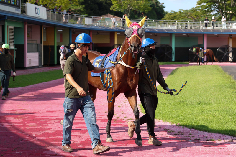 기쁨함성. 사진=한국마사회 기쁨함성 (12전 2/3/4, 레이팅 47, 한국 수 4세 밤색, 부마: 한센, 모마: 테이크미어웨이투, 마주: 김창희, 조교사: 이준철) 명문 혈통을 자랑하는 '한센'의 자마다. 지난 5월 이후 30주 만에 복귀전을 치른다. 2023년 데뷔 이래 1위는 단 2번에 그쳤지만, 통산 연승률은 75%로 출전마 중 가장 높다. 그만큼 기복 없이 차분하고 안정적인 성적을 유지해 온 숨은 복병이다. 휴양 전에는 장추열 기수가 기승했었으나, 이번에는 새롭게 빅투아르 기수와 호흡을 맞춘다.