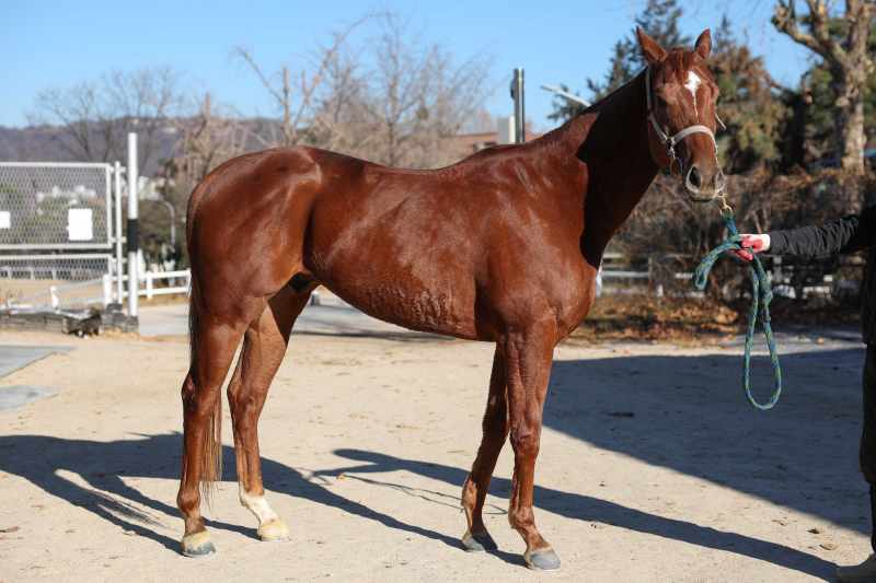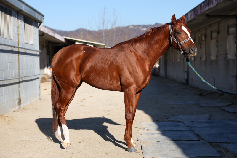 태양의전사. 사진=한국마사회 태양의전사(3전 2/0/0, 레이팅 38, 한국 수 2세 갈색, 부마: 올드패션드, 모마: 금빛환희, 마주: 박남성, 조교사: 문병기) 이번경주 출전마 중 유일한 2세마지만, 결코 얕볼 수 없는 우승 후보다. 올해 7월 데뷔한 태양의전사는 총 3번의 경주 중 2번의 경주에서 1위를 따내며 잠재력을 입증했다. 선행 또는 선입형 전개를 펼치며, 가장 최근 10월 25일 경주에서는 출발부터 결승선 통과까지 1위를 놓치지 않는 뛰어난 주행 능력을 뽐냈다. 부마인 '올드패션드'는 그간 '캡틴양키', '흥바라기' 등 준수한 자마를 꾸준히 배출한 검증된 씨수말이다.