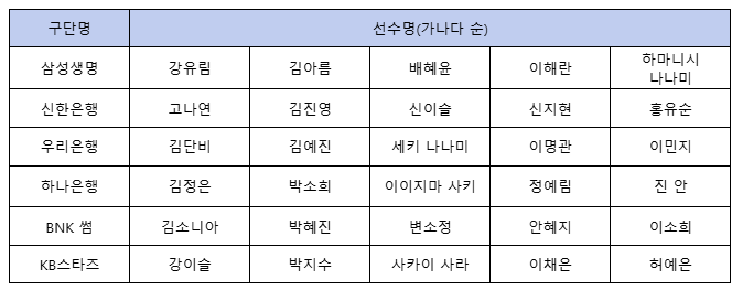 여자농구연맹(WKBL)이 올스타 페스티벌 참가 선수 선발을 위한 팬 투표 후보 명단을 4일 공개했다.