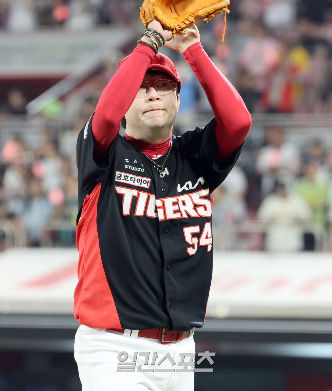 22일 오후 수원 KT위즈파크에서 열린 2025 프로야구 KIA와 KT 경기. KIA 선발 양현종이 7회 교체되며 팬들에게 인사하고 있다. 수원=정시종 기자 /2025.05.22.