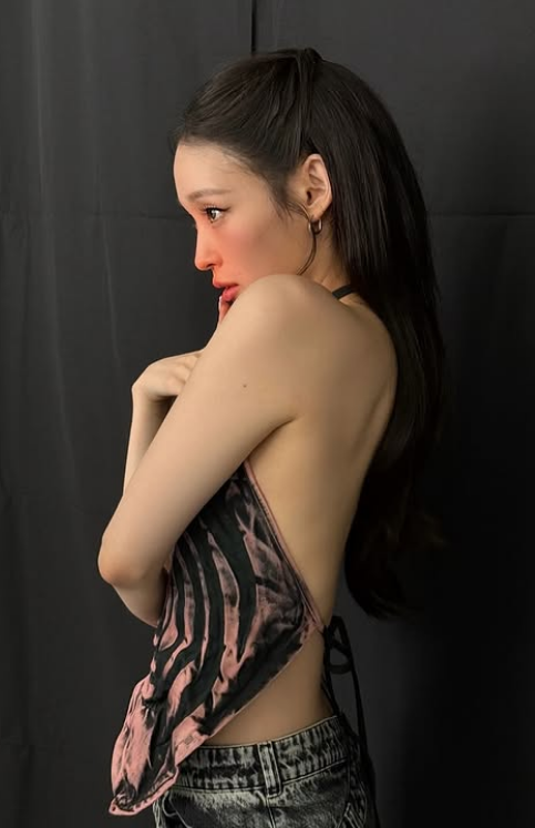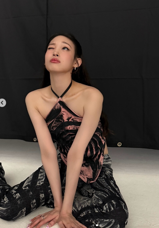 목 뒤로 끈을 묶는 스타일의 이 상의는 그의 슬림한 허리 라인과 탄탄한 등 라인을 강조하며 시크한 매력을 발산한다. 또한, 빈티지한 워싱의 와이드 팬츠와 굵은 포니테일 헤어스타일, 발그레한 볼터치 메이크업이 어우러져 트렌디하면서도 유니크한 분위기를 완성한다. 사진=올데이 프로젝트 애니 SNS 특히 애니는 국내 유통그룹 신세계 정유경 회장의 장녀로 알려져 데뷔 전부터 큰 관심을 모았던 바 있다. 그는 국내외 명문 학교를 거쳐 올데이 프로젝트 멤버로 정식 데뷔하며 남다른 행보를 이어가고 있다.