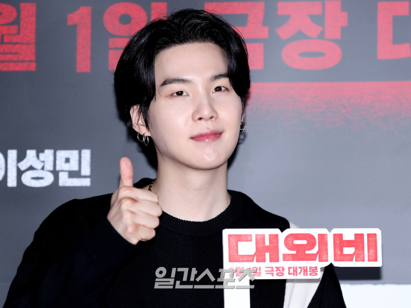 그룹 BTS 슈가가 27일 오후 서울 강남구 코엑스 메가박스에서 진행된 영화 '대외비' VIP시사회에 참석해 포토타임을 갖고 있다. '대외비'는 1992년 부산, 만년 국회의원 후보 해웅과 정치판의 숨은 실세 순태, 행동파 조폭 필도가 대한민국을 뒤흔들 비밀 문서를 손에 쥐고 판을 뒤집기 위한 치열한 쟁탈전을 벌이는 범죄드라마다. 오는 3월 1일 개봉한다. 서병수 기자 qudtn@edaily.co.kr /2023.02.27.