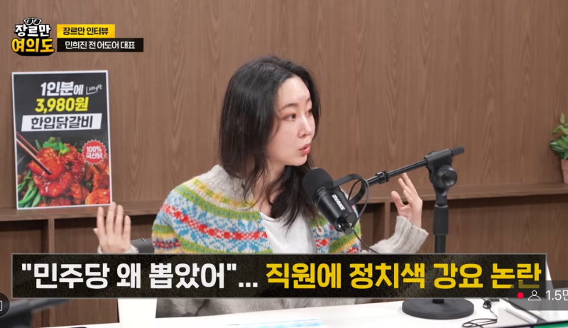 사진=유튜브 채널 ‘장르만 여의도’ 캡처. 민희진 전 어도어 대표가 하이브와의 250억 풋옵션 분쟁 속에서 템퍼링·정치색 강요 등 제기된 의혹을 모두 부인했다.