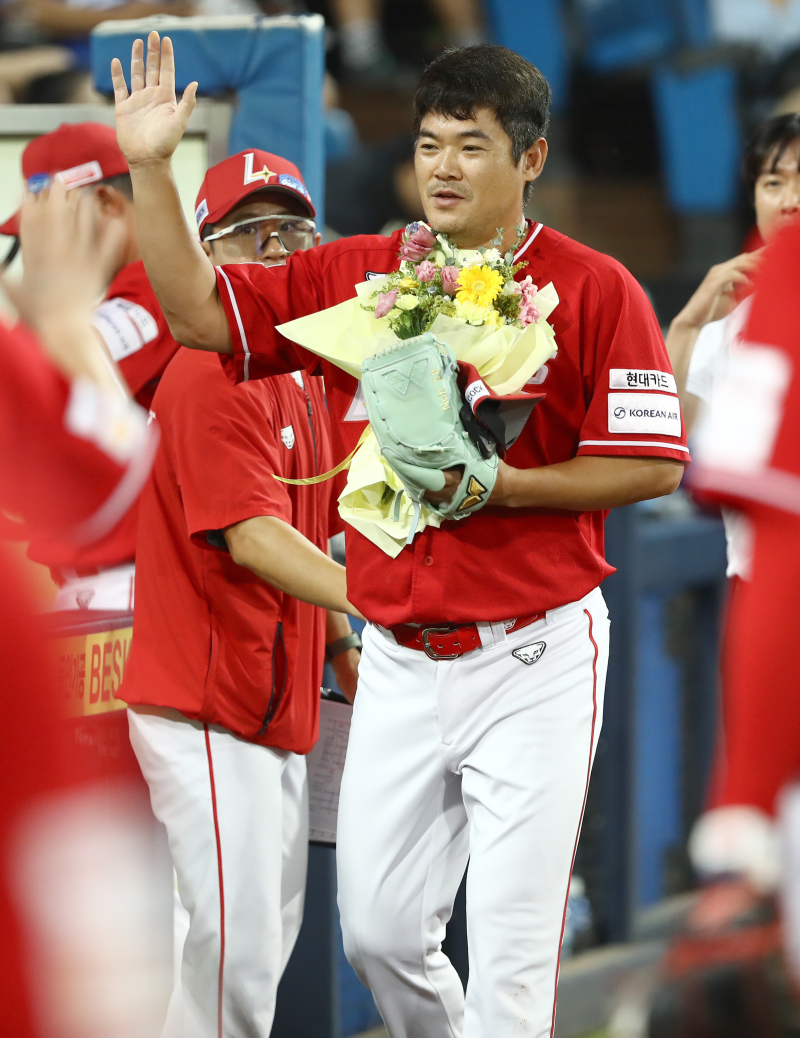 (인천=연합뉴스) 임순석 기자 = 11일 인천 SSG랜더스필드에서 열린 2025 프로야구 KBO리그 포스트시즌 준플레이오프 2차전 삼성 라이온즈와 SSG 랜더스의 경기. 7회초 실점 없이 막아낸 SSG 노경은 투수가 더그아웃으로 향하고 있다. 2025.10.11 <저작권자 ⓒ 1980-2025 ㈜연합뉴스. 무단 전재 재배포 금지, AI 학습 및 활용 금지> SSG 랜더스 투수 노경은(41)이 2025 페어플레이상을 받는다.