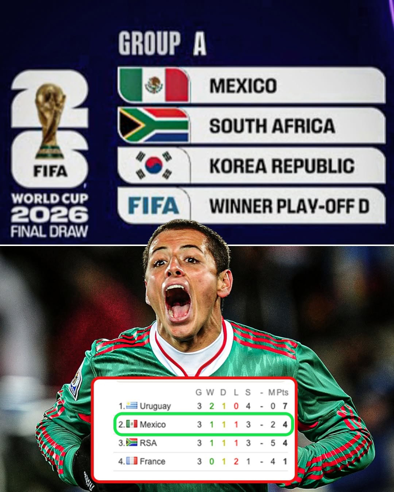 6일 2026 FIFA 북중미 월드컵 조추첨 결과, 대표팀은 A조에 편성돼 멕시코, 남아공과 맞붙게 됐다. 아래 사진은 지난 2010년 남아공 월드컵 당시, 프랑스를 무찌르고 16강에 진출했던 멕시코. 사진=ESPN SNS 홍명보호가 2026 국제축구연맹(FIFA) 북중미 월드컵 조별리그 3경기를 모두 멕시코에서만 치르게 됐다. 상대적으로 수월한 조 편성 결과라는 시선도 있지만, 가장 먼저 만날 상대를 내년 4월에야 알 수 있다는 게 변수다.