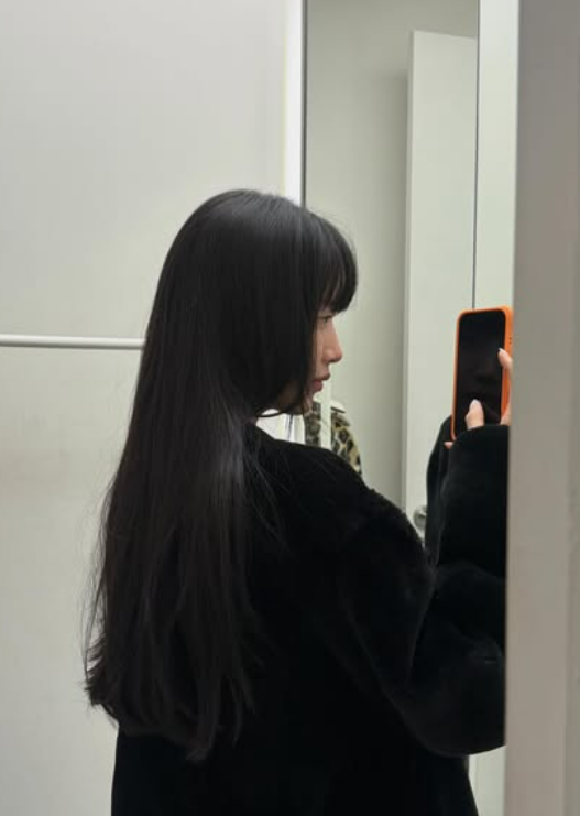 두 장의 셀카 사진 속에서 문가영은 앞머리를 내린 헤어스타일로 시선을 집중시켰다. 그는 자신의 휴대폰으로 거울 셀카를 찍으며, 검은색 의상과 강렬한 오렌지색 휴대폰 케이스의 대비를 통해 스타일리시한 감각을 돋보이게 했다.