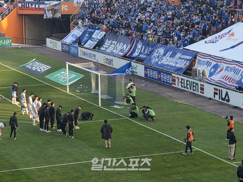 경기 종료 휘슬이 울리자, 90분 내내 뜨거운 응원을 보냈던 수원 팬들 사이서 잠시 침묵이 흘렀다. 이후 “변성환 나가”를 외치기 시작했다. 변 감독은 자리를 옮겨가며 팬들에게 큰절을 올리고, 확성기를 통해 사퇴 의사를 전했다.