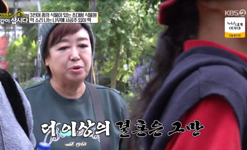 이날 박원숙, 혜은이, 홍진희는 황석정과 식물원을 찾았다. 특히 결혼식장처럼 꾸며진 꽃길을 보며 박원숙은 “우리는 더 이상 걸을 수가 없다. 버진로드”라며 미혼인 황석정에게 혼자 걸어보길 추천했다.