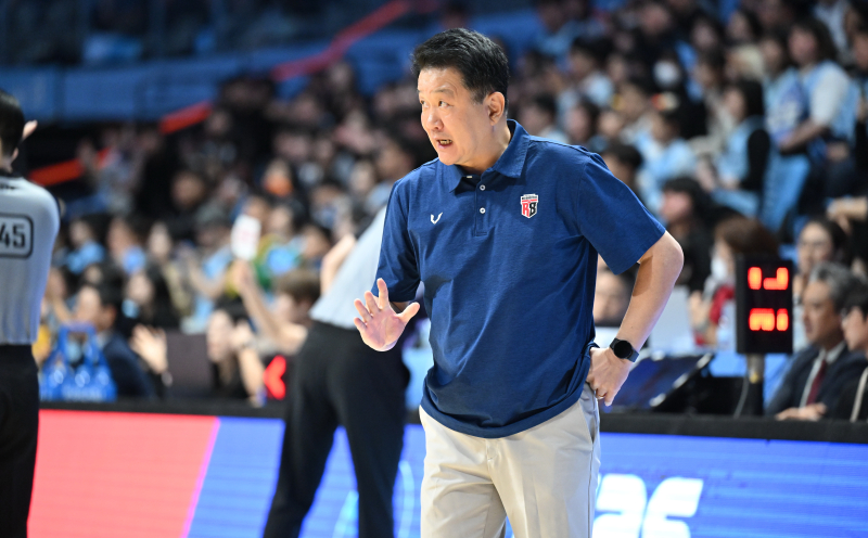 9일 고양소노아레나에서 열린 소노와 정관장의 2025~26 LG전자 프로농구 정규리그 경기. 유도훈 정관장 감독이 작전을 지시하고 있다. 사진=KBL