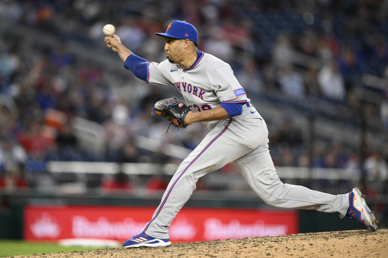 New York Mets relief pitcher Edwin Diaz throws during the ninth inning of a baseball game against the Washington Nationals, Saturday, April 26, 2025, in Washington. (AP Photo/Nick Wass)/2025-04-27 09:31:50/ <저작권자 ⓒ 1980-2025 ㈜연합뉴스. 무단 전재 재배포 금지, AI 학습 및 활용 금지>