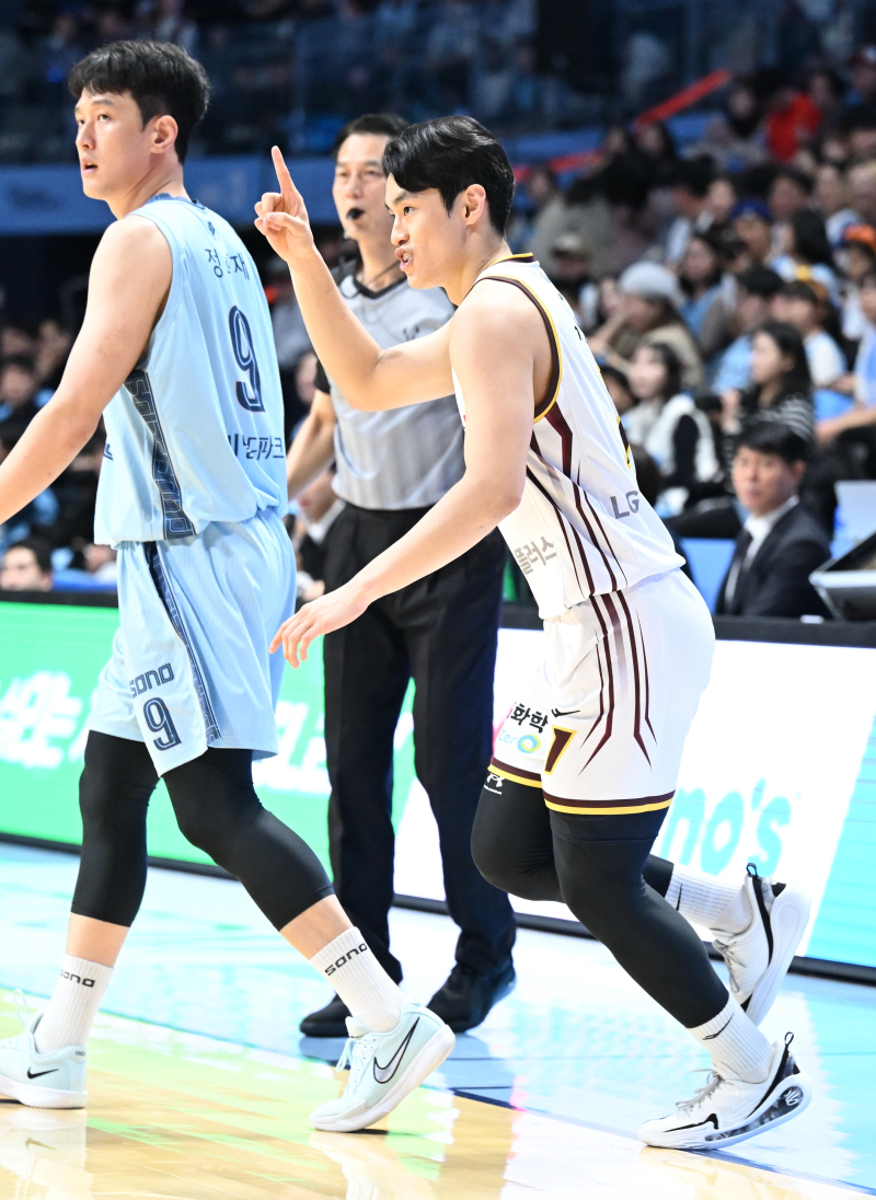 프로농구 창원 LG 포워드 양홍석(28·1m95㎝)과 가드 유기상(24·1m88㎝)이 28점을 합작하며 전날 대패의 충격에서 벗어났다.