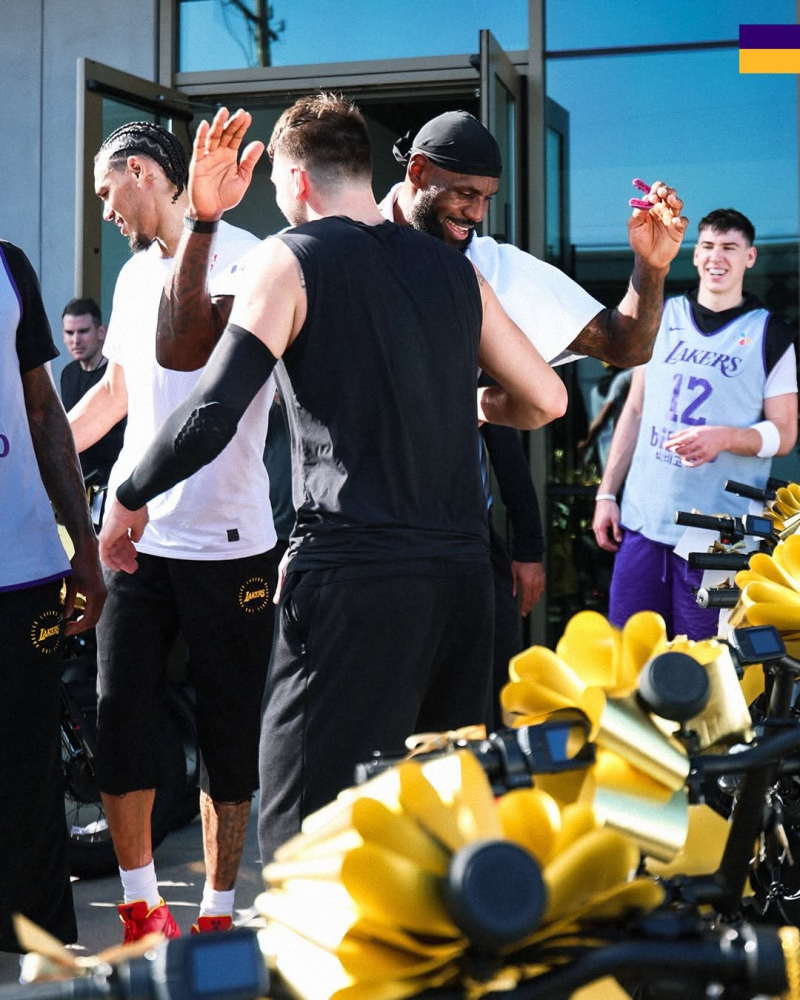 상황은 이렇다. 이날 LA 소셜미디어(SNS)에는 돈치치가 선수단 전체를 위해 특별한 선물을 전달했다고 소개했다. 돈치치는 선수와 직원들에게 전기 자전거를 증정했다. 각 자전에는 선물을 연상케 하는 리본은 물론, 각자의 이름까지 담겨 있었다.