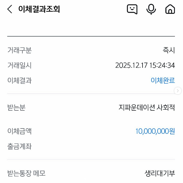 공개된 사진에는 유병재가 국제개발협력 NGO 단체에 1000만 원을 기부한 이체 내역이 담겼다. 해당 단체는 취약계층 여성을 위한 생리대 지원 사업을 진행하고 있는 것으로 알려졌다.