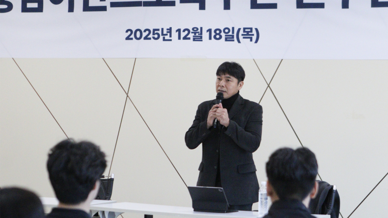 임관식 충남아산 신임 감독이 18일 아산이순신종합운동장 대회의실에서 열린 2026시즌 선수단 상견례 자리서 발언하고 있다. 사진=충남아산 임관식 충남아산 신임 감독이 첫 상견례서 선수단을 향해 경고성 메시지를 전했다.