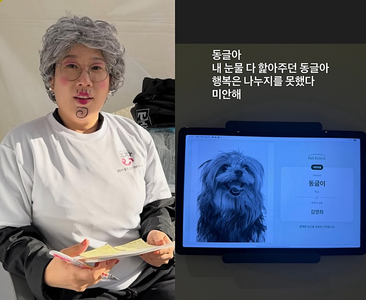 김영희는 지난 19일 자신의 SNS를 통해 “동글이가 긴 여행을 떠난 날”이라며 반려견 동글이의 사망 소식을 알렸다.