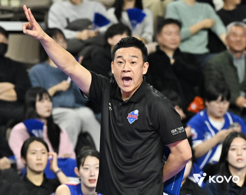 11월 26일 경기도 화성종합경기타운 실내체육관에서 열린 프로배구 V리그 여자부 IBK기업은행 알토스와 흥국생명 핑크스파이더스의 경기에서 여오현 감독대행이 작전을 지시하고 있다. 연합뉴스 여오현 대행은 우려의 시선을 이겨내고 4연승을 달렸다. 지난 14일 선두 한국도로공사에 세트 점수 2-3으로 패해 연승을 멈췄으나, 17일 페퍼저축은행전에서 3-0으로 완승했다.