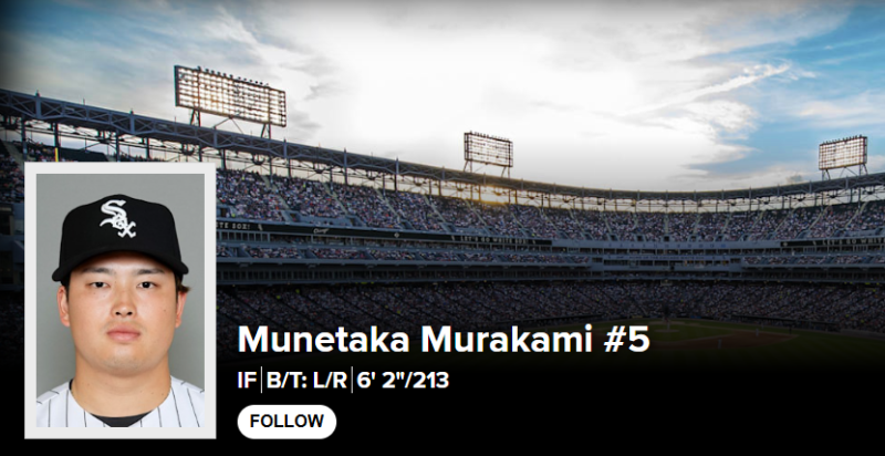 시카고 화이트삭스 모자를 쓴 무라카미의 MLB닷컴 프로필 사진. 사진=MLB닷컴 캡처
