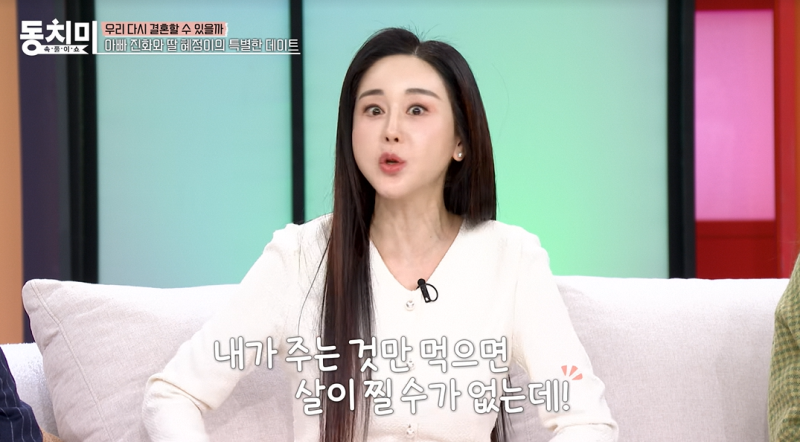 27일 방송된 MBN 예능 ‘속 풀이쇼 동치미’에서는 함소원과 한집 살이를 하고 있는 진화와 딸 혜정의 일상이 공개됐다.