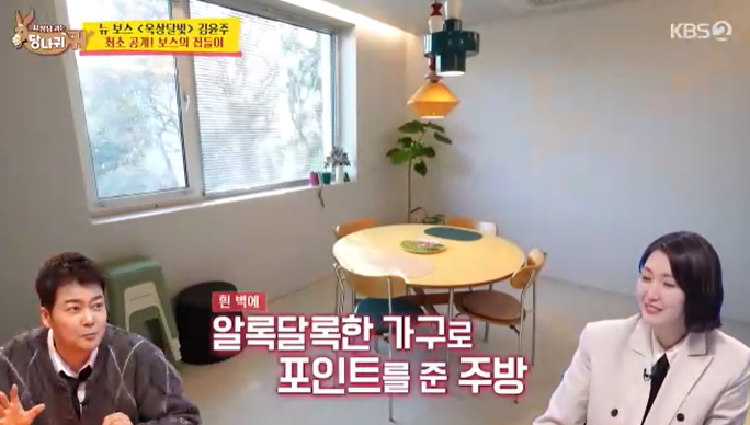 파스텔톤의 거실과 미니멀한 아이템들이 눈길을 끈 가운데 인테리어에 대해 김윤주는 “(권정열과) 같이 상의했다”며 “제가 좋아하는 것들을 하긴 했다”고 전했다. 이를 VCR로 지켜본 김숙은 “집이 너무 예쁘다”고 감탄했다.