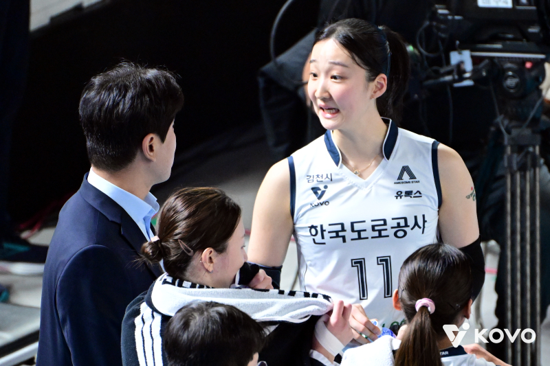 도로공사는 시즌 초반 베테랑 미들블로커 배유나가 어깨 부상으로 빠졌지만, 김세빈과 신인 이지윤의 활약 덕에 선두를 질주하고 있다. 김종민 도로공사 감독과 김세빈이 작전 타임 때 대화하고 있다. 사진=KOVO 이달 중순 V리그 여자부 최다승 기록을 작성한 김종민 감독은 김세빈이 더 성장할 수 있다고 믿는다. 김 감독은 "본인의 포지션에서 지금보다 더 자기 몫을 해야 한다"라며 "현재 모습으로는 성에 차지 않는다"고 말했다. 이어 "분명 높이와 파워를 갖춘 선수"라며 "(중요한 상황에서) 욕심보다 양보하려는 경향이 있다. 스스로 해결하려는 모습이 필요하다"고 바랐다.